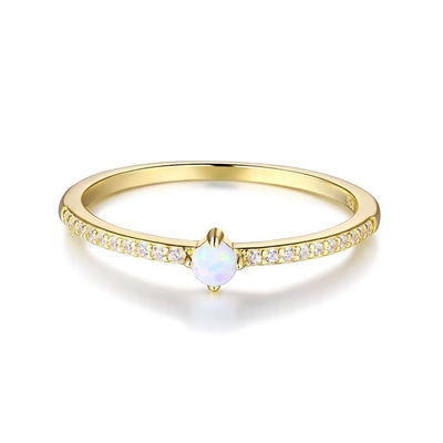 Women's Minimalist Design 925 Sterling Silver 18K Gold White Zircon Opal Ring